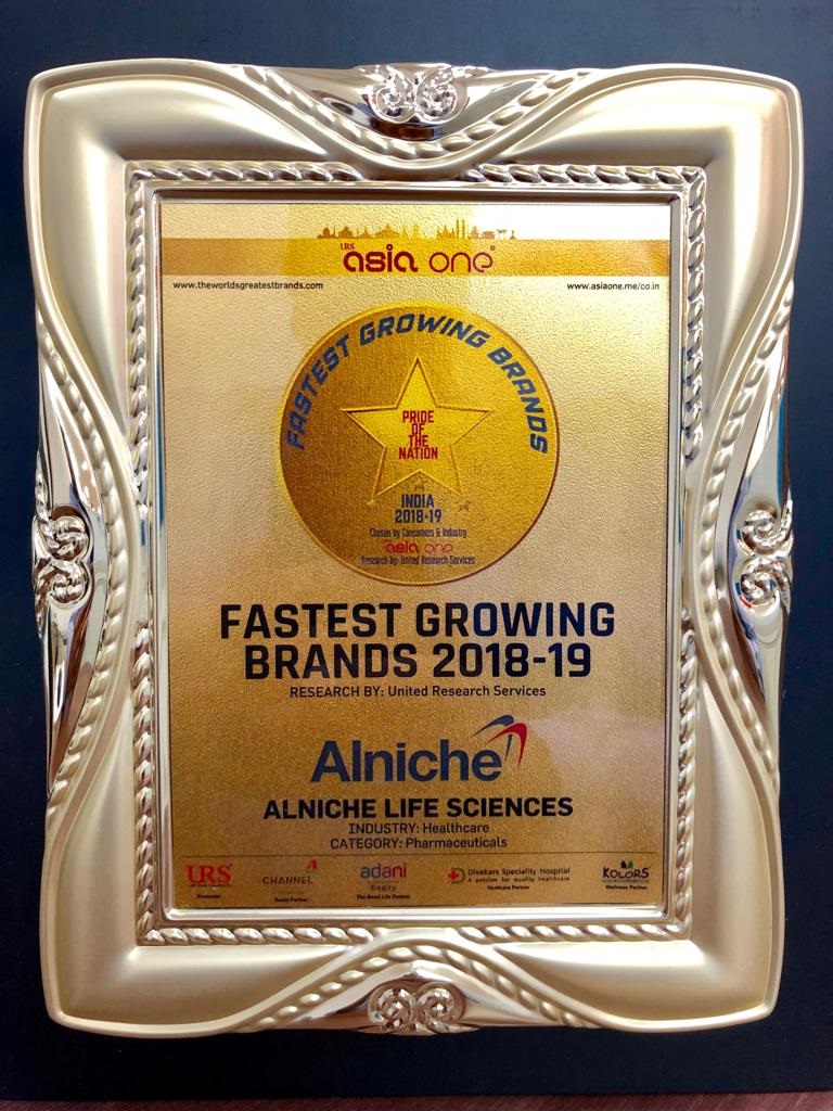 Alniche team receiving the prestigious award for new product Launch (COMPLIPRO) under the category of Excellence in Pharmaceutical Brand Management by Mr. Michael Duck (Executive Vice President, Informa Markets Asia) at New Delhi India.