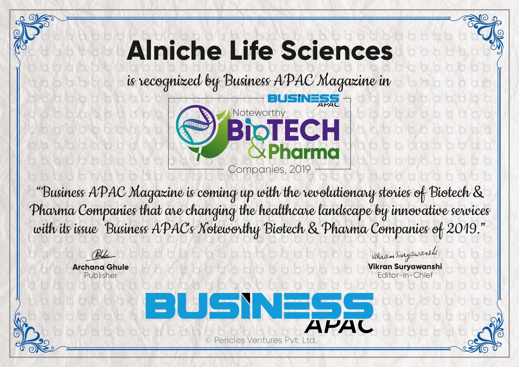 Alniche regularly publishes patient awareness articles in various magazines. Above article on EZEPRO was published in the Pharma Review edition sep-oct 2019